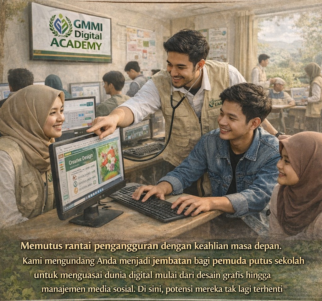 Program pelatihan keterampilan digital (desain, admin medsos) untuk pemuda putus sekolah.